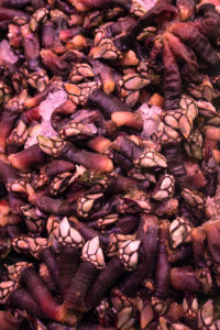 Europe, Spain. Percebes fresh shellfish on ice in the market of Barcelona.